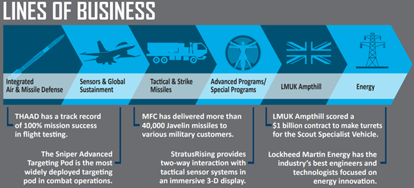 MFC의 주요 프로그램으로는 대표적인 대공미사일 PAC-3과 THAAD(사드)와 전술미사일 MLRS, Hellfire 그리고 사격통제장치 SNIPER 등이 있습니다. 특히, 2016년 THAAD(사드)가 대한민국에 배치 결정되면서, 중국의 강한 반대와 지정학적 리스크가 증가하면서 이목을 집중시킨 바 있습니다 한편, 수주잔고는 THAAD(사드)와 PAC-3을 중심으로 증가할 것으로 예상됩니다