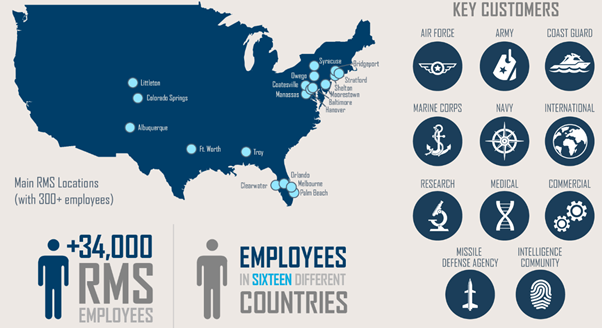 RMS 사업부는 1,000개가 넘는 프로그램을 보유하고 있으며, 주로 군용 및 상업용 헬리콥터를 디자인하고 제작합니다. 또한, 함선과 잠수함 그리고 전투 시스템을 제작하고 무인 시스템과 기술 그리고 시뮬레이션과 훈련 서비스를 제공합니다. 그리고 각국 정부의 정보 보안을 위해 우수한 군용 통신 솔루션을 제공합니다. 주요 프로그램으로는 Black Hawk와 Seahawk 등의 프로그램이 있습니다