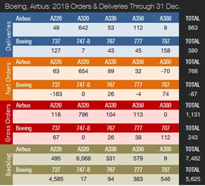 737 Max의 중대한 결함과 더불어 운항 재개 연기는 Boeing(보잉)의 항공기 신규 수주에 악영향을 미쳤습니다. 2019년 12월 기준으로 Airbus(에어버스)가 768대의 신규 항공기를 수주하는 동안, Boeing(보잉)은 87대의 주문 취소를 처리해야 했습니다. 심지어 737 기종은 183대의 주문 취소가 발생했습니다