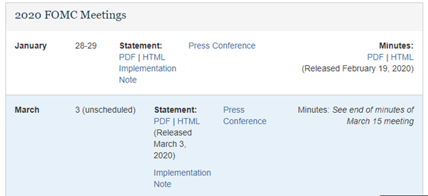 아래의 링크로 들어가면, FOMC 회의 스케쥴과 전망, 그리고 성명서를 읽어볼 수 있습니다